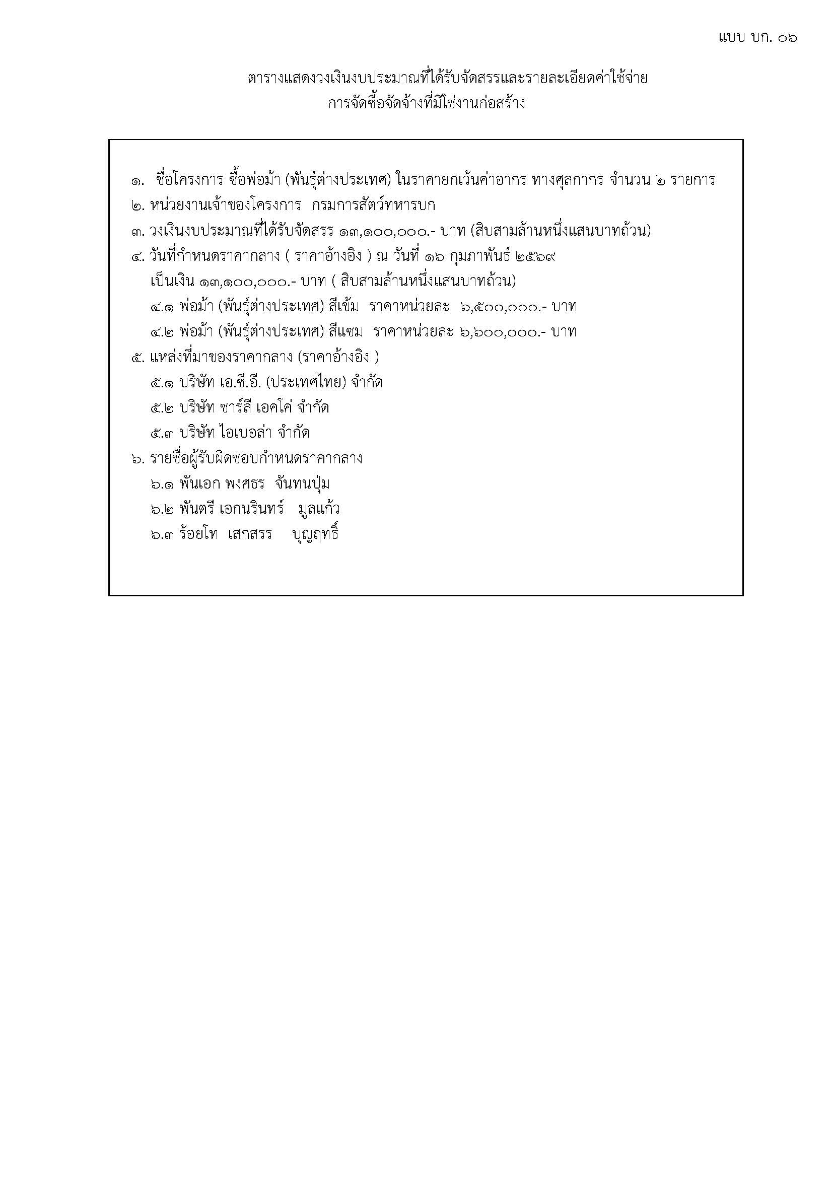 ราคากลางซื้อพ่อม้า(พันธุ์ต่างประเทศ)