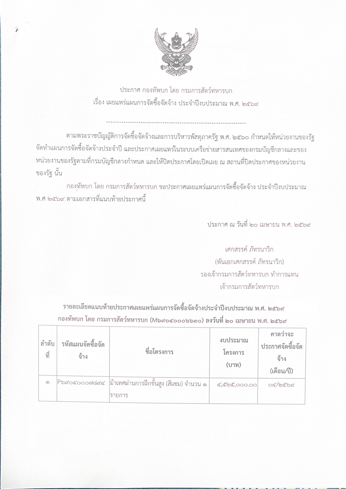 เผยแพร่แผนการจัดซื้อจัดจ้าง ประจำปีงบประมาณ ๒๕๖๙ (ม้าเทศผ่านการฝึกขั้นสูง(สีแซม)