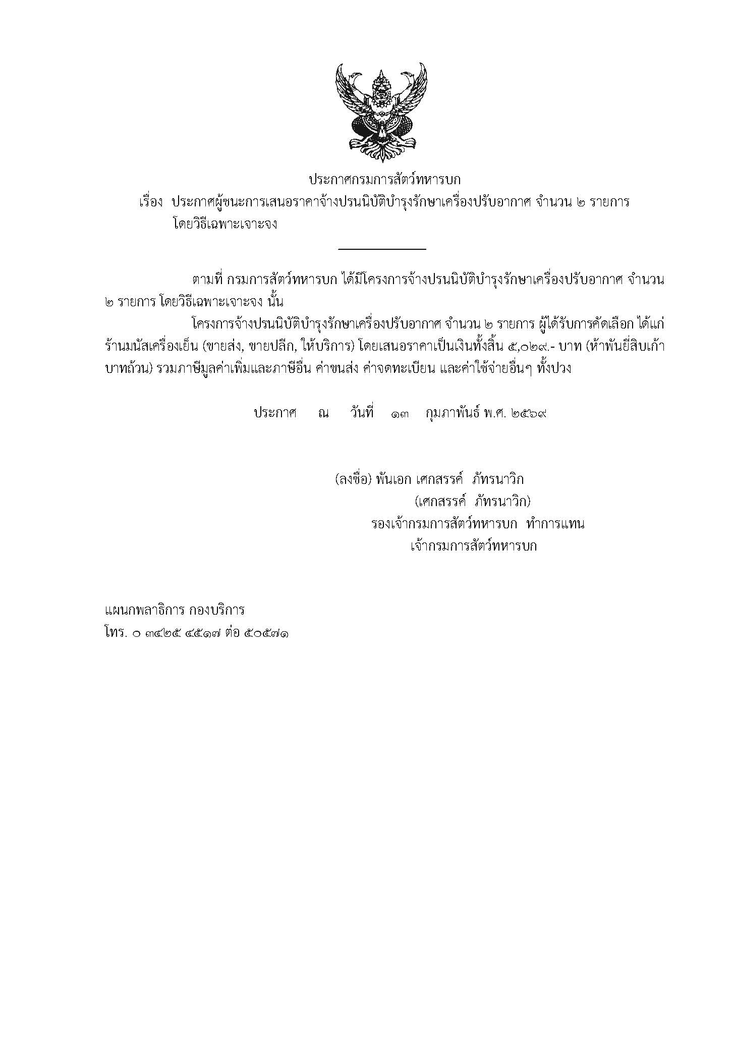 ประกาศผู้ชนะการเสนอราคาจ้างปรนนิบัติบำรุงรักษาเครื่องปรับอากาศ จำนวน ๒ รายการ