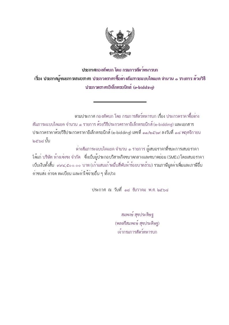 ประกาศผู้ชนะการเสนอราคา ประกวดราคาซื้อต่างสัมภาระแบบไคแยค จำนวน ๑ รายการ