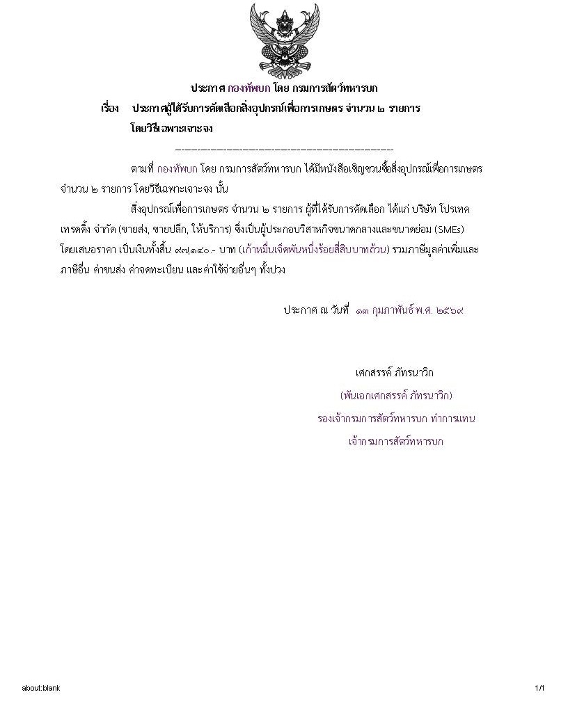ประกาศผู้ได้รับการคัดเลือกซื้อ สป.เพื่อการเกษตร จำนวน ๒ รายการ