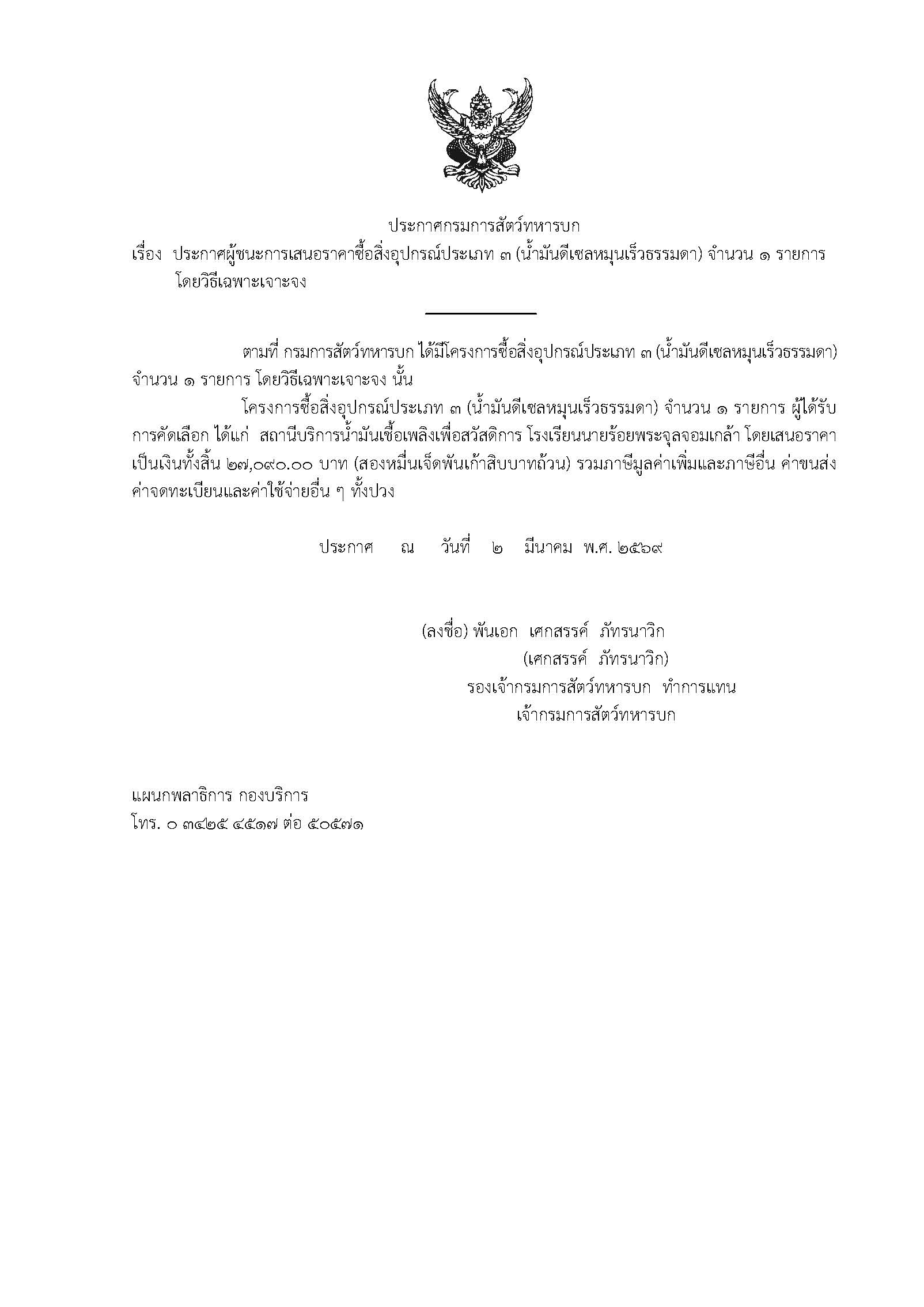 ประกาศผู้ชนะการเสนอราคาซื้อ สป.3 (น้ำมันดีเซลหมุนเร็วธรรมดา)