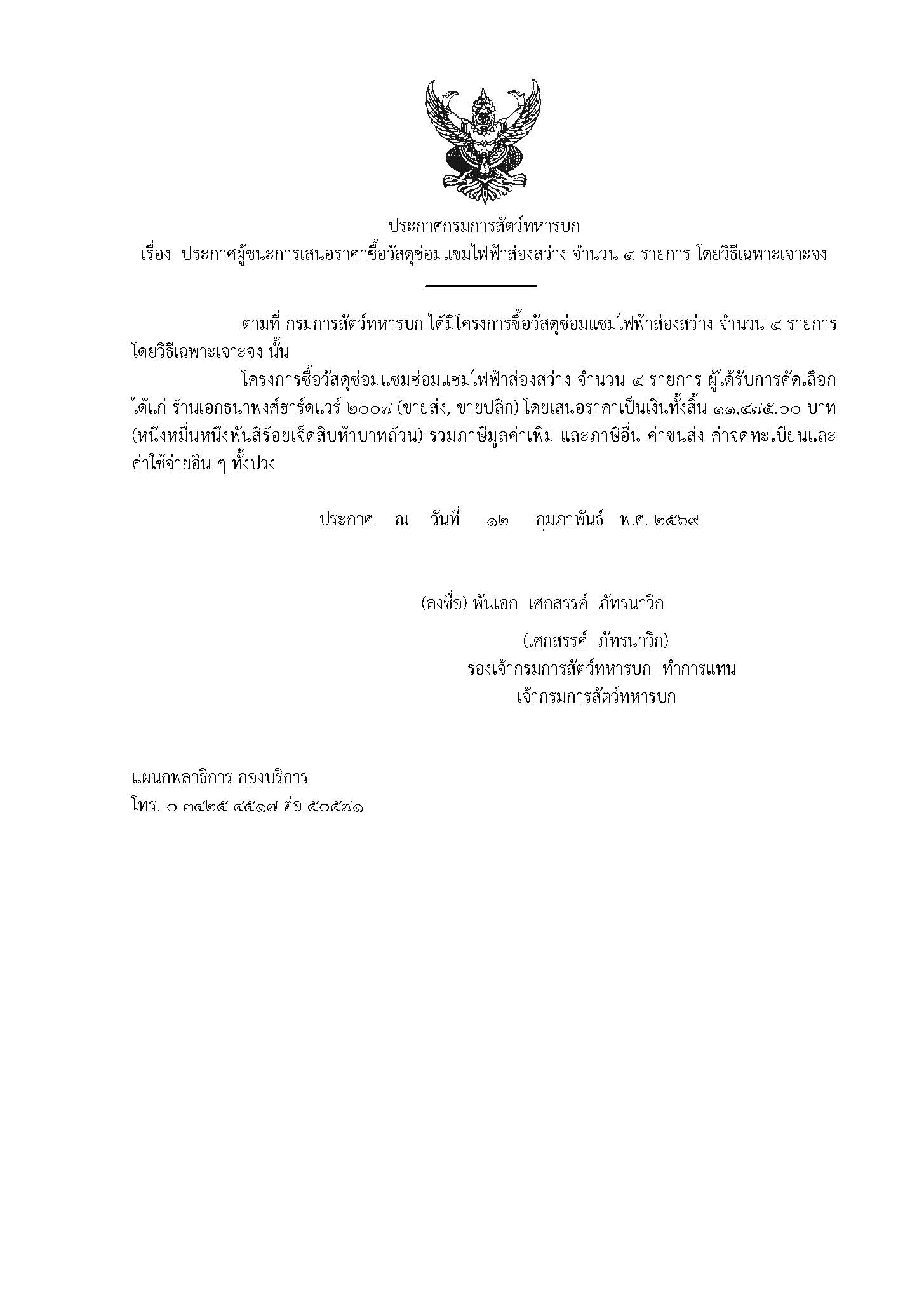 ประกาศผู้ชนะการเสนอราคาซื้อวัสดุซ่อมแซมไฟฟ้าส่งสว่าง จำนวน ๔ รายการ