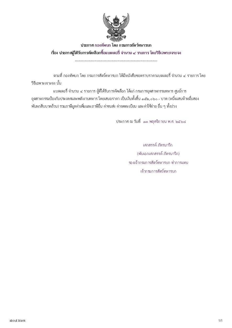 ประกาศผู้ที่ได้รับการคัดเลือกซื้อแบตเตอรี่ จำนวน ๔ รายการ