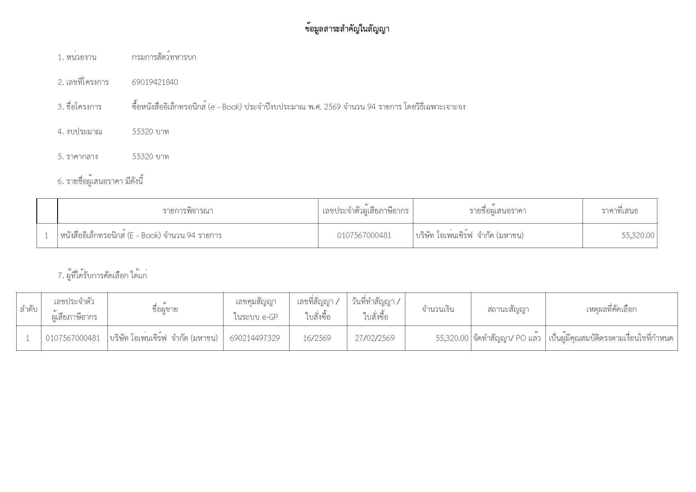 ข้อมูลสาระสำคัญในสัญญา 69019421840