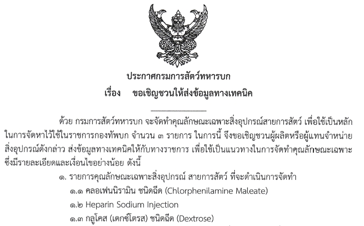 ขอเชิญชวนให้ส่งข้อมูลทางเทคนิค จำนวน ๓ รายการ (สป.สาย กส.)