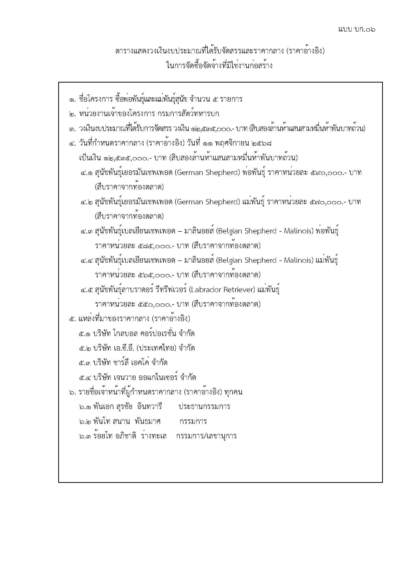ราคากลางโครงการซื้อพ่อพันธุ์และแม่พันธุ์สุนัข จำนวน ๕ รายการ