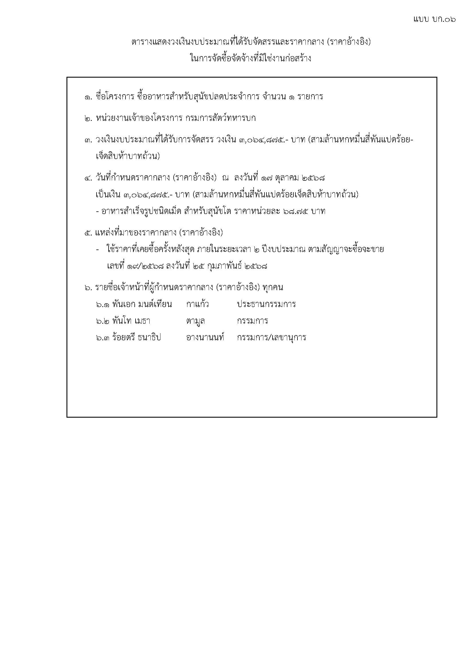 ราคากลางโครงการซื้ออาหารสำหรับสุนัขปลดประจำการ จำนวน ๑ รายการ