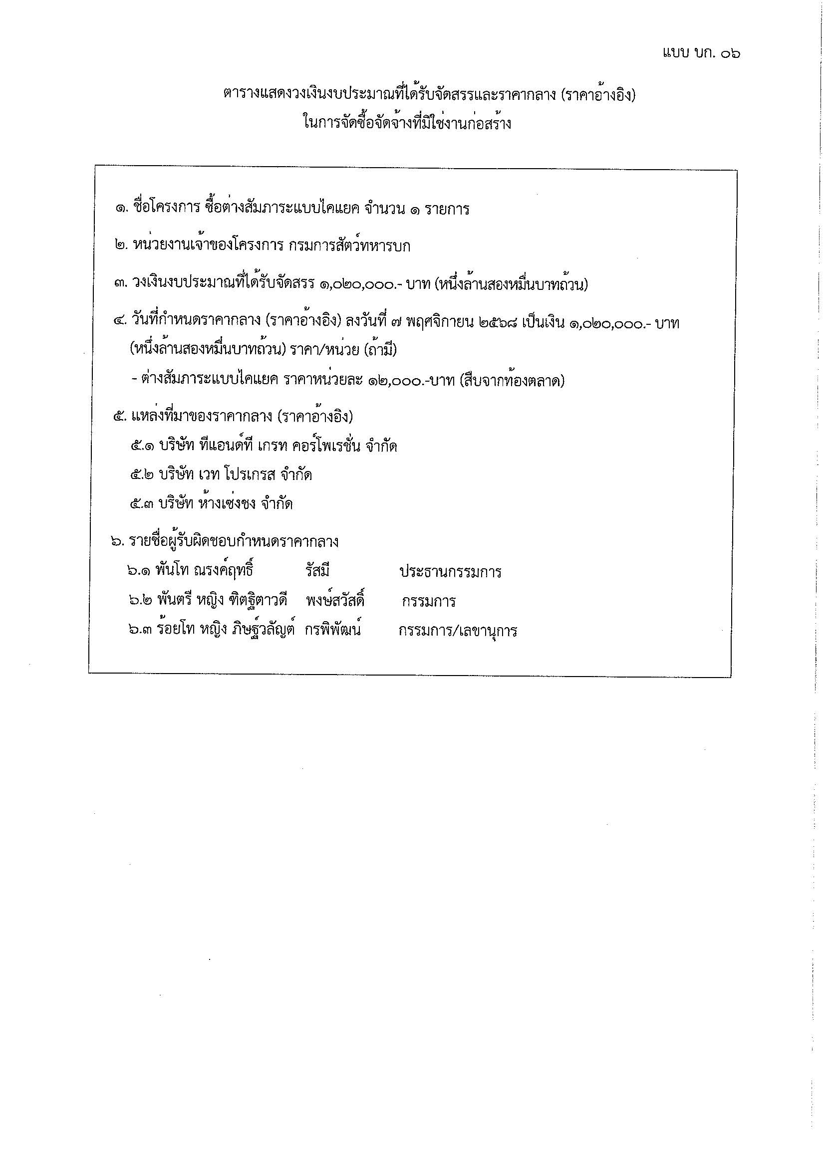 ราคากลางโครงการซื้อต่างสัมภาระแบบไคแยค จำนวน ๑ รายการ