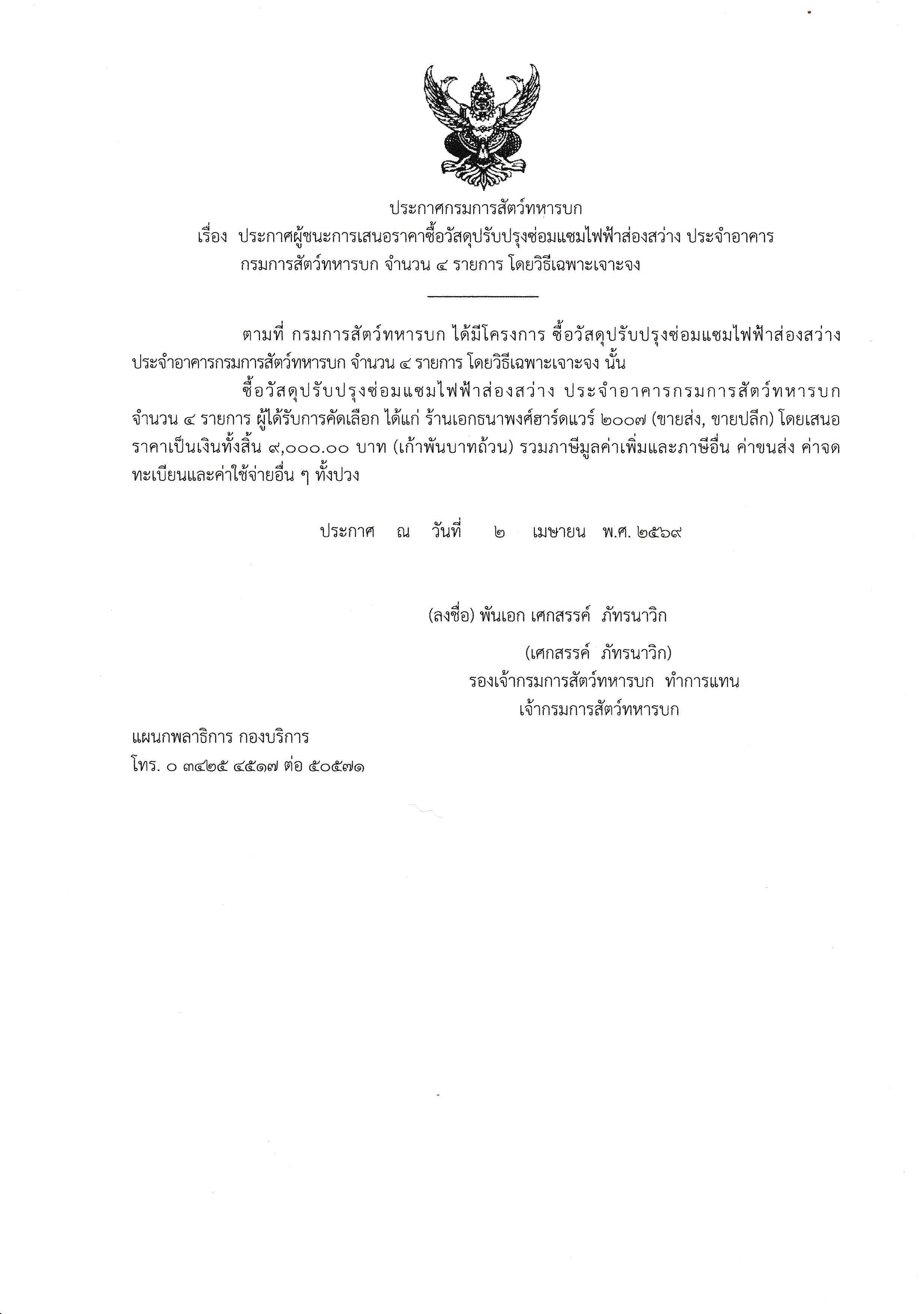 ประกาศผู้ชนะการเสนอราคาซื้อวัสดุปรับปรุงซ่อมแซมไฟฟ้าส่องสว่างฯ