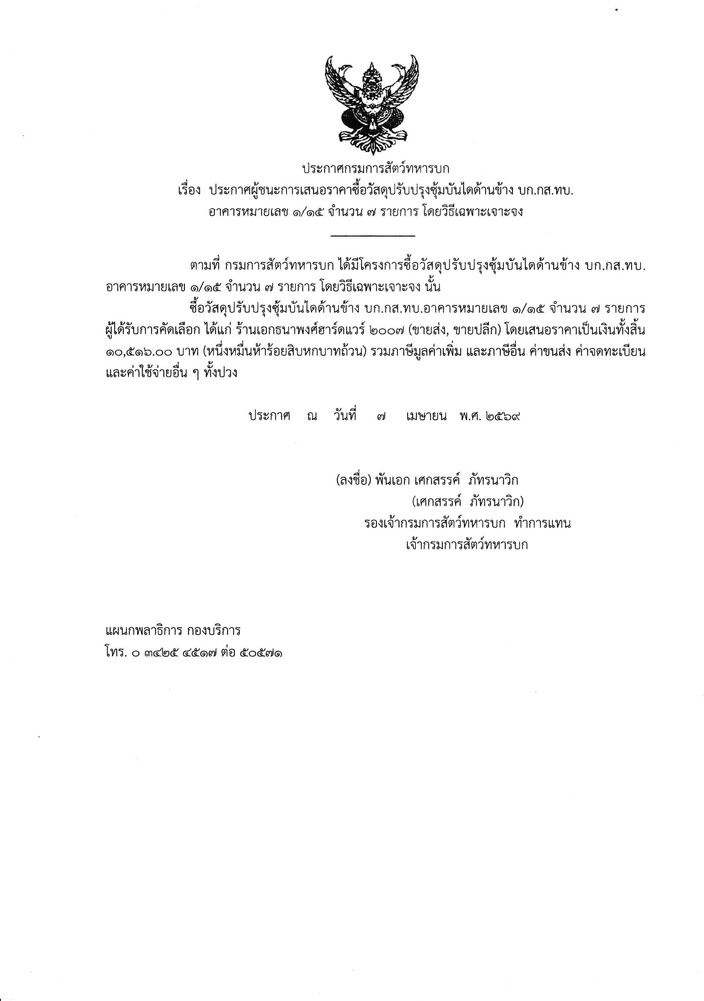 ประกาศผู้ชนะการเสนอราคาซื้อวัสดุปรับปรุงซุ้มบันไดด้านข้าง ฯ