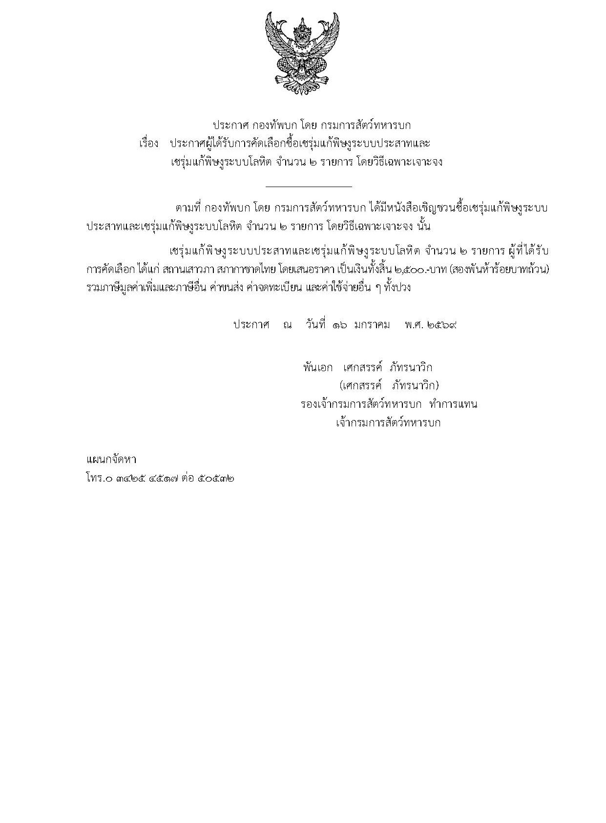 ประกาศผู้ได้รับการคัดเลือกซื้อเซรุ่มแก้พิษงูฯ จำนวน ๒ รายการ