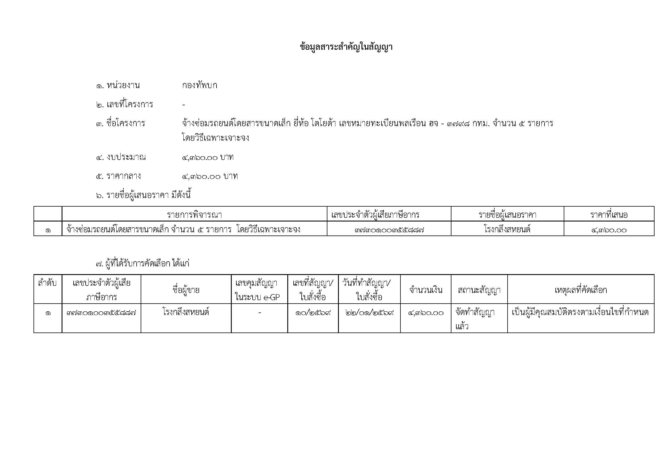 ข้อมูลสาระสำคัญในสัญญา โครงการจ้างซ่อมรถยนต์โดยสารฯ ฮจ - ๓๗๙๘ กทม.
