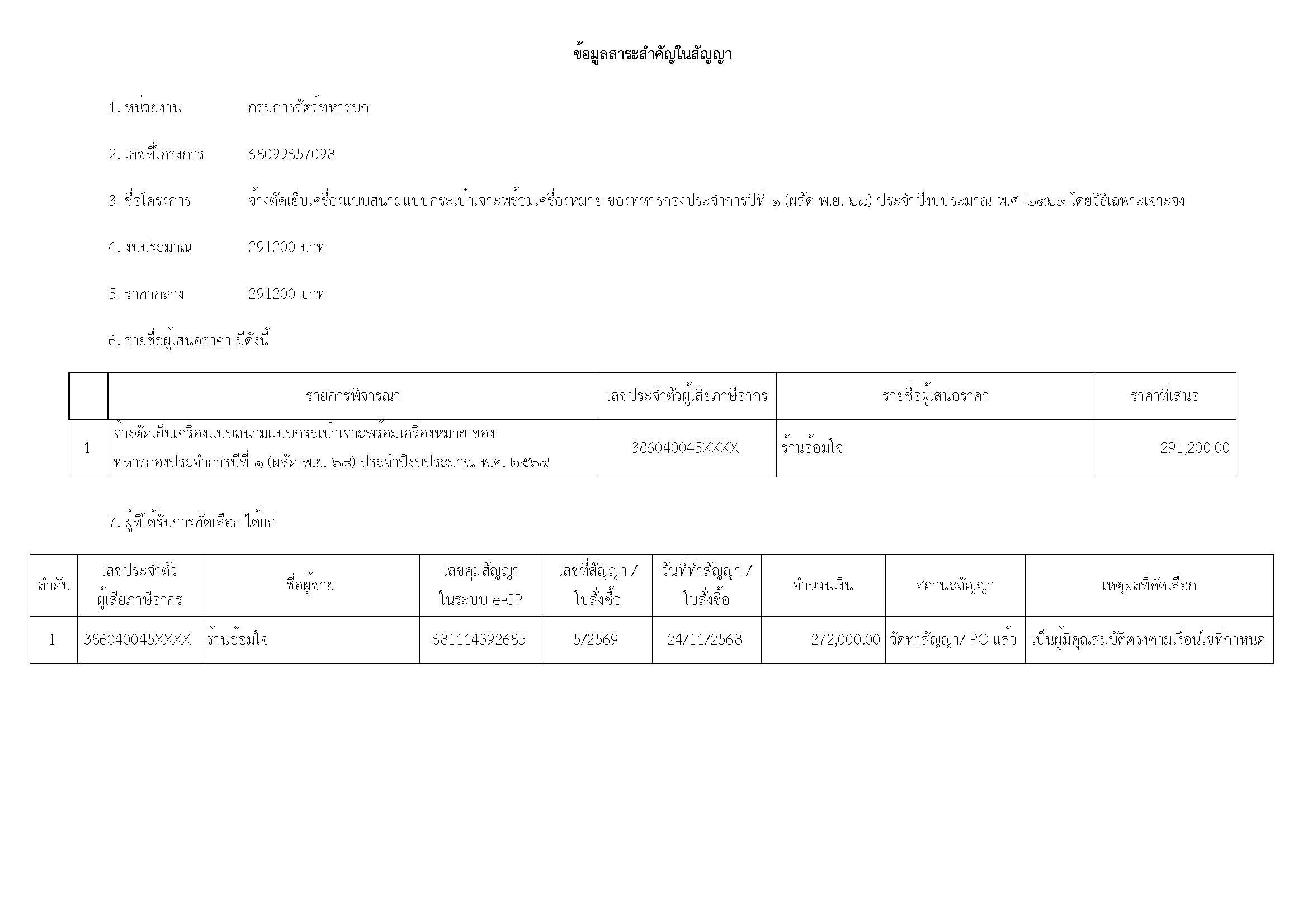 ข้อมูลสาระสำคัญในสัญญา 68099657098