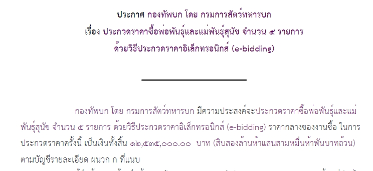 ประกาศประกวดราคาซื้อพ่อพันธุ์และแม่พันธุ์สุนัข จำนวน ๕ รายการ