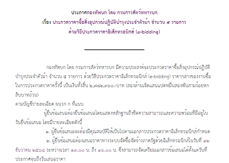 ราคากลาง โครงการซื้อ สป.ปฏิบัติบำรุงประจำตัวม้า จำนวน ๕ รายการ