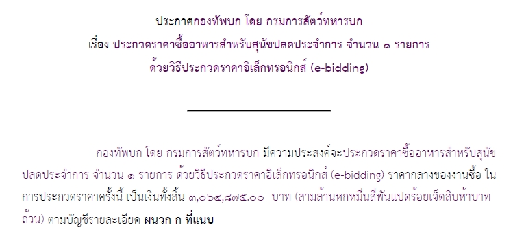 ประกวดราคาซื้ออาหารสำหรับสุนัขปลดประจำการ จำนวน ๑ รายการ