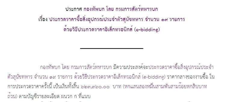 ประกวดราคาซื้อ สป.ประจำสุนัขทหาร จำนวน ๑๙ รายการ